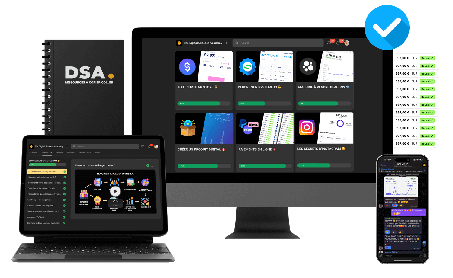 The Digital Success Academy : Formation Complète avec Droit de Revente (Valeur 597 €) + 12 Produits Digitaux Inclus (Valeur 1 000 €) + Coaching Privé WhatsApp