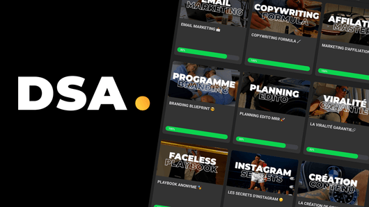La Digital Success Academy est une formation en ligne complète qui vous apprend à créer un business digital automatisé grâce à la vente de produits numériques à droits de revente (MRR).